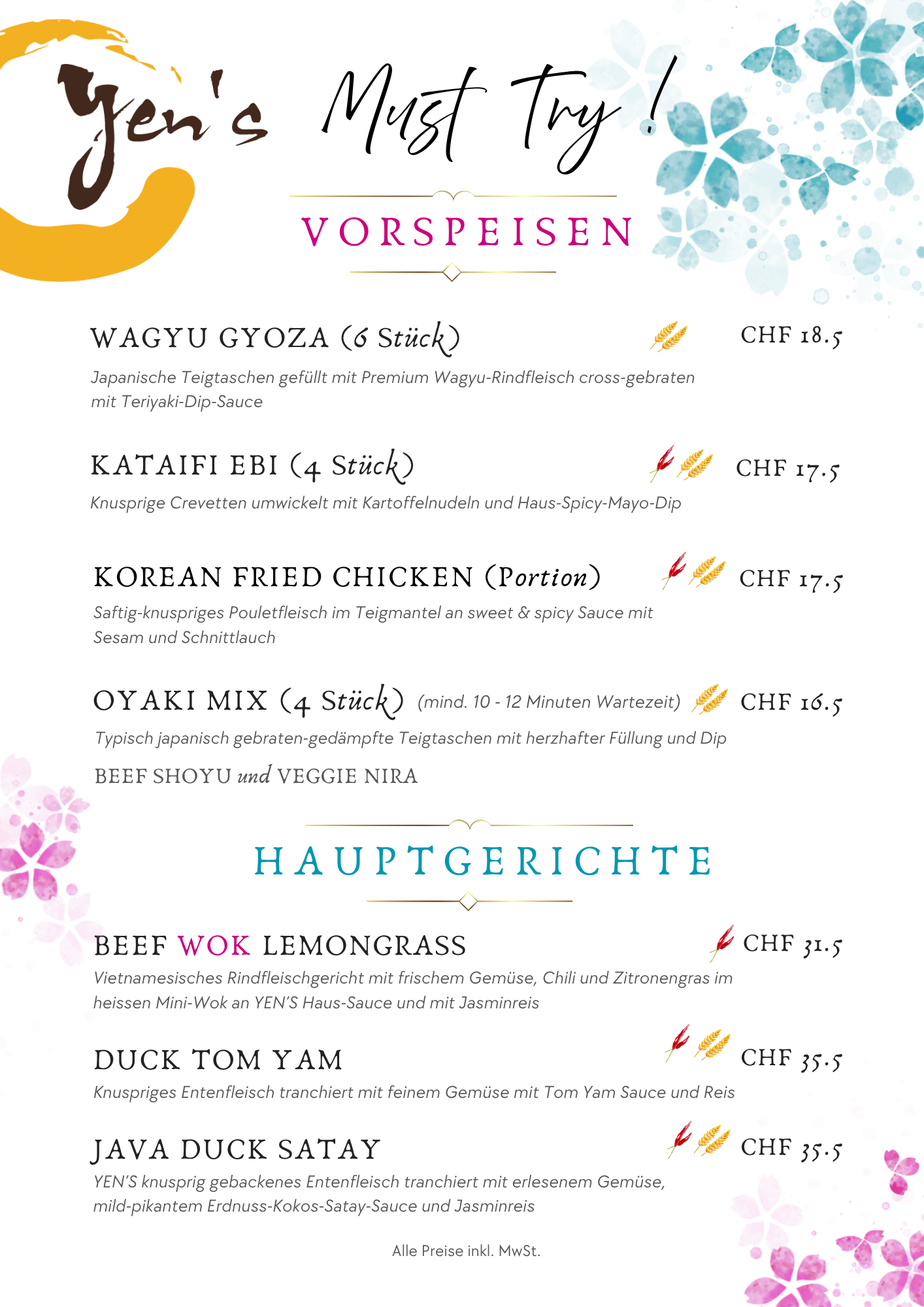 - *YEN'S Take-Out Vorzugs-Preis, nicht mit 10% Take Away-Rabatt kumulierbar