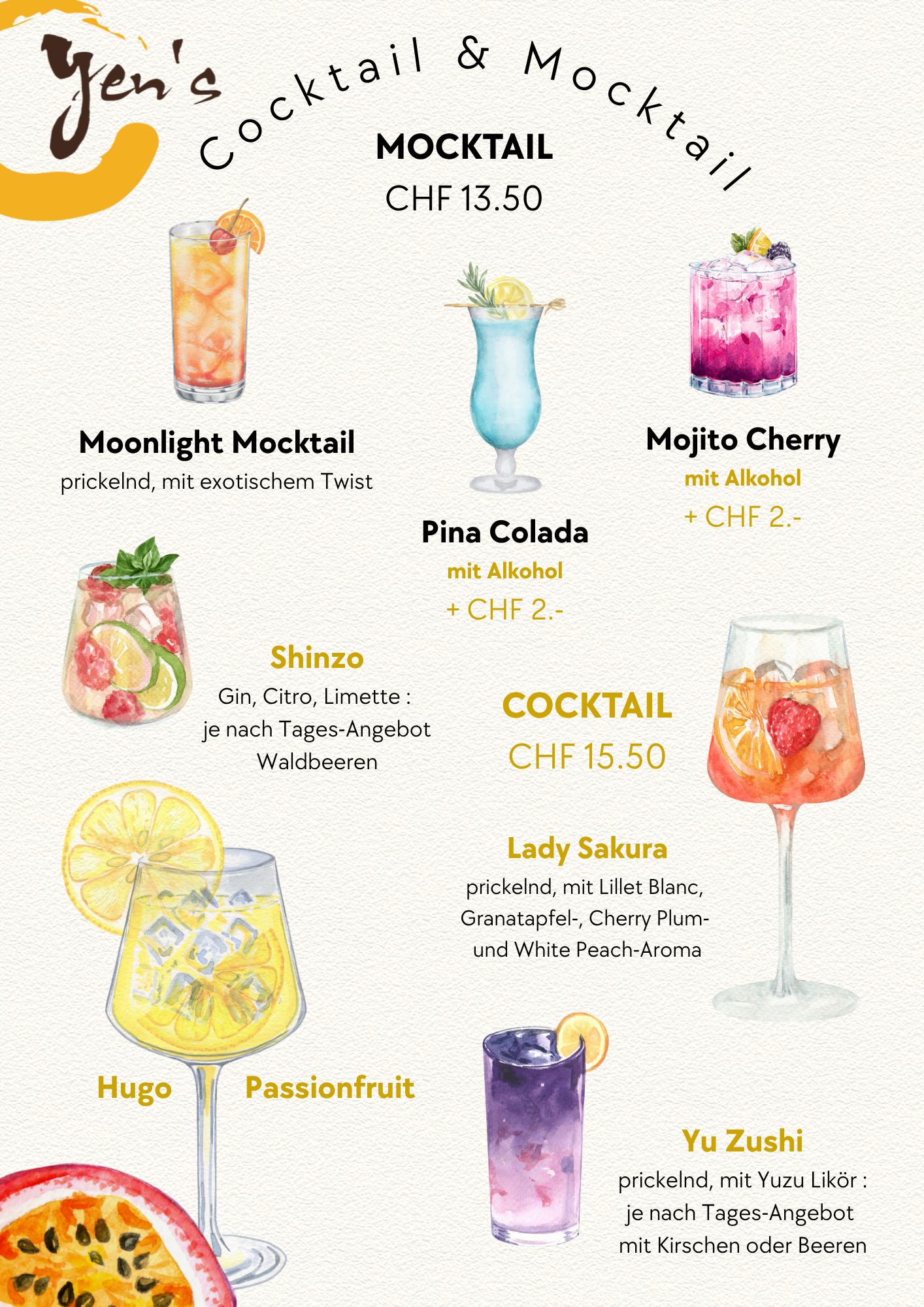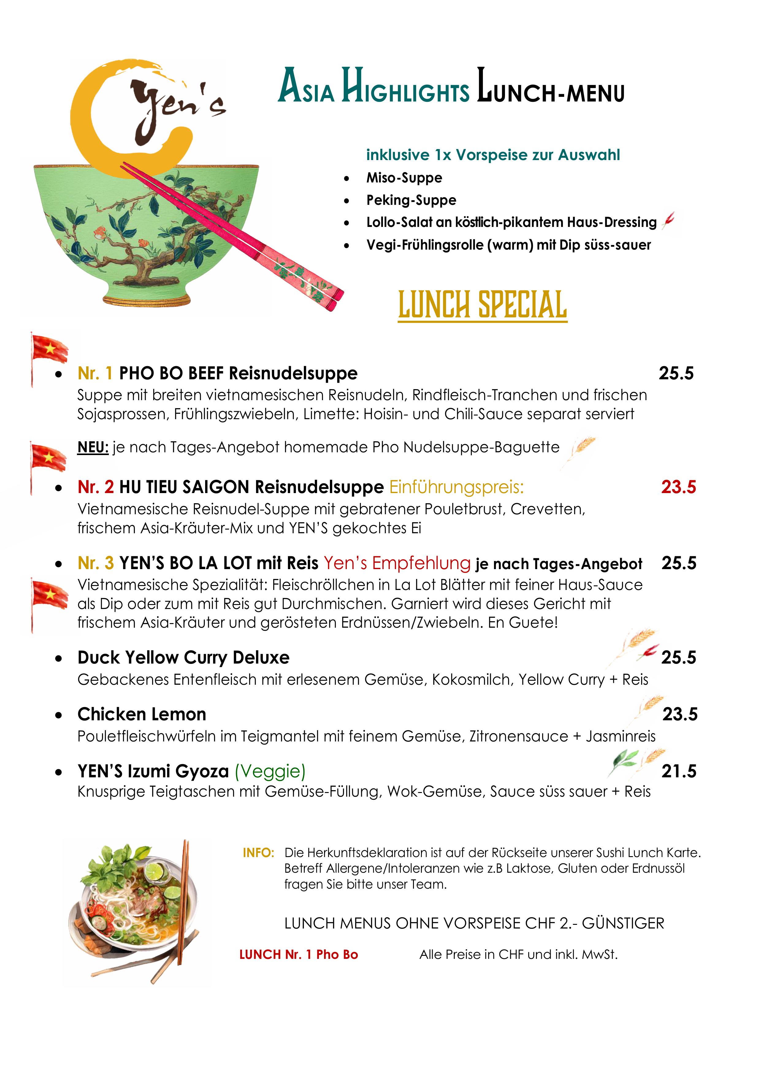 - *YEN'S Take-Out Vorzugs-Preis, nicht mit 10% Take Away-Rabatt kumulierbar